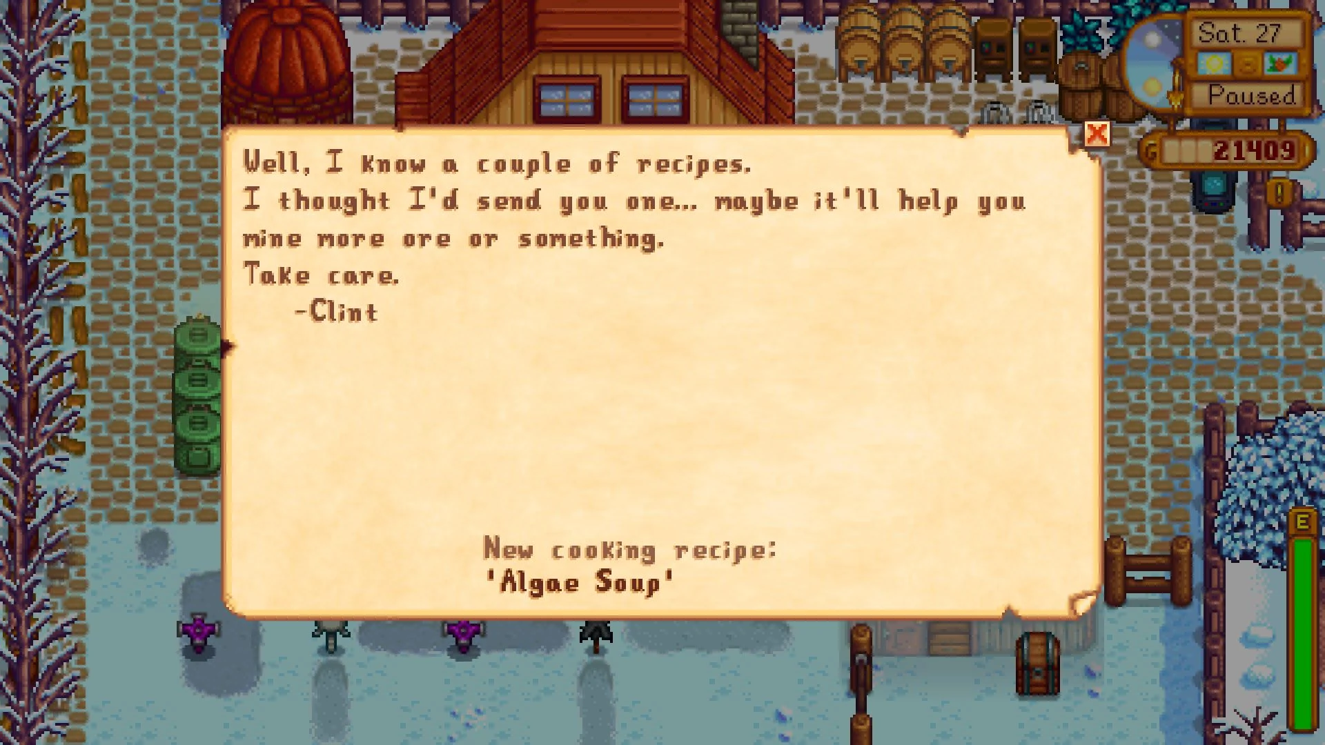 Clint Stardew Valley - Clint Stardew Valley Wiki Fandom, When receiving a metal bar from clint (one of either copper, iron or gold) it is possible to simply start over.